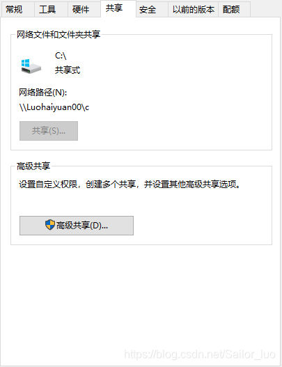 6、点击确定,应用后,回到属性界面,复制网络路径,发给准备共享的人A